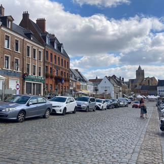 Direction south east. Destination. Lille. I was excited to be off again on another micro-adventure and escape busy city life. The first day was a bit longer than we normally aim for, but as I mentioned it was pan flat - bar a hump pretty much at the half way point at Cassel / Kassel depending on where you're from. We stopped in the charming little town for an hour or so and enjoyed a Tripel and an Orangina, surrounded by locals tucking into ginormous chip baguettes.